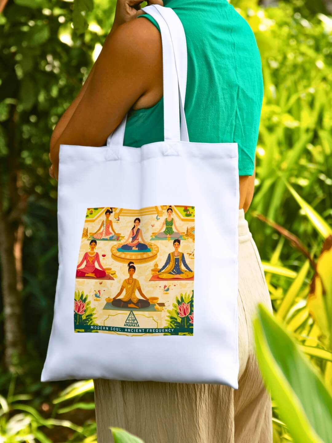 Inspired by Anahata Retreat, this folk digital art tote reflects slowing down as a shared, cultural practice. The illustration draws from village rhythms, pauses between work and moments of stillness woven into everyday life.